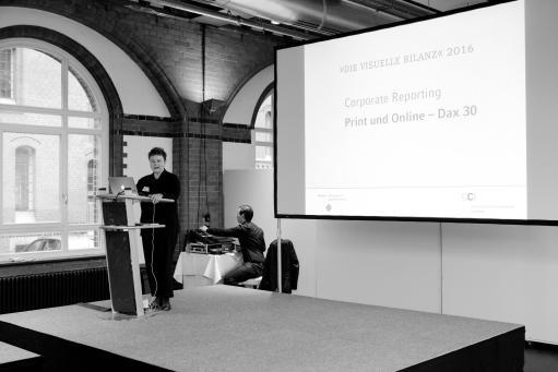 Die Bewertung kommunikativer und gestalterischer Qualität von Geschäftsberichten erfordert wissenschaftliche Auseinandersetzungen mit den Publikationen und ihrer visuellen Wahrnehmung. Was erwarten Analysten von Geschäftsberichten? Wie und was lesen sie? Und inwieweit leitet sie dabei die Gestaltung? Dazu kurz: Die Gestaltung leitet immer – gut oder schlecht. Nach einer Studie des CCI, die Professorin Gisela Grosse vorstellte, konnte sie den Beweis auf eindrucksvollste Weise vorführen: