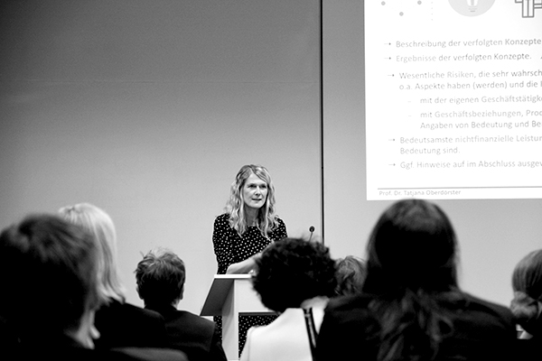 Das Ergebnis der CCI-Statistik, wonach die Nachhaltigkeitsberichte der DAX-30-Unternehmen an Bedeutung gewinnen, zeigt sich auch in dem Vortrag von Prof. Dr. Tatjana Oberdörster, Wirtschaftswissenschaftlerin und Expertin für nichtfinanzielle Berichterstattung. Ihr Thema: die neue CSR-Richtlinie und ihre Bedeutung für die berichtenden Unternehmen. Eines ist klar: Diese Richtlinie, die im März 2017 im Bundestag verabschiedet wurde, ändert eine vermeintlich grundlegende Eigenschaft der Nachhaltigkeitsberichterstattung: ihre Freiwilligkeit. So war die Berichterstattung über nichtfinanzielle Leistungsindikatoren zwar schon seit 2004 im HGB vorgesehen. Das Prinzip der Freiwilligkeit hatte jedoch zur Folge, dass der Bedeutungszuwachs des Themas Nachhaltigkeit für die Investoren nicht zwangsläufig mit einer Vertrauenswürdigkeit der Berichterstattung einherging. In der Praxis hat jedes Unternehmen berichtet, wie es wollte, innerhalb oder außerhalb des Lageberichts, integriert oder in separaten Berichten, quantitativ oder nur qualitativ usw. Damit, so der Gedanke der CSR-Richtlinie, soll jetzt Schluss sein.