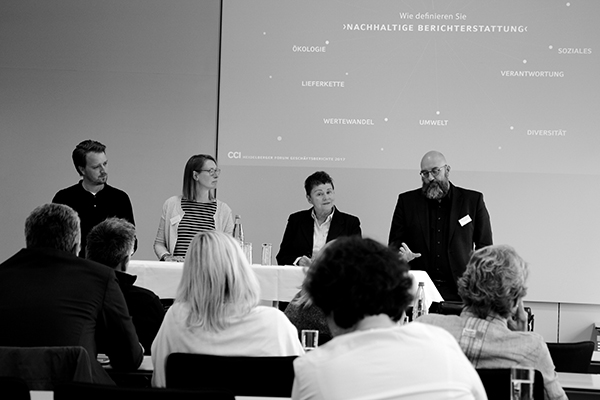Am 14. und 15. September 2017 war es wieder so weit: Das CCI lud zum Heidelberger Forum Geschäftsberichte in die Print Media Academy in Heidelberg ein. Als die zentrale Institution für ›Best Practice Sharing‹ in Sachen Geschäftsbericht bietet das Forum den teilnehmenden Unternehmen neben fachlichen Vorträgen auch die Möglichkeit des Austausches mit anderen Geschäftsberichts-Verantwortlichen. Das aktuelle Thema in diesem Jahr: ›Nachhaltige Berichterstattung‹. Schon seit Längerem auf der Tagesordnung, bekommt das Thema Nachhaltige Berichterstattung durch die neue CSR-Richtlinie des Bundestages aktuell besondere Relevanz. Und bringt die, die die neuen gesetzlichen Vorgaben in diesem Jahr erstmals umsetzen müssen, ganz schön ins Schwitzen.